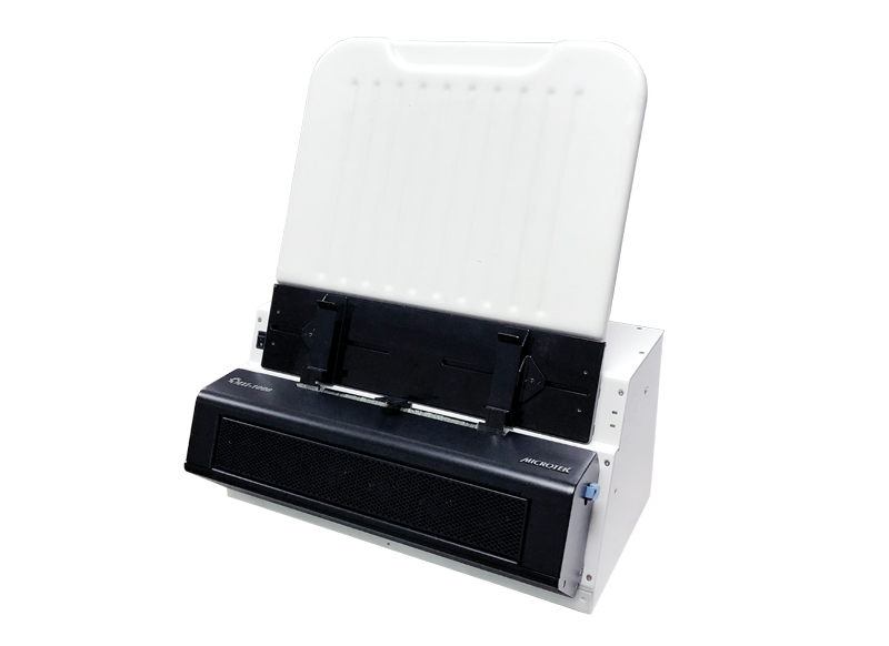 MII-1000配置多通道進(jìn)片托盤(pán)(單通道和三通道可切換),對(duì)于定寬80mm寬底片,一同時(shí)掃描三張影像。